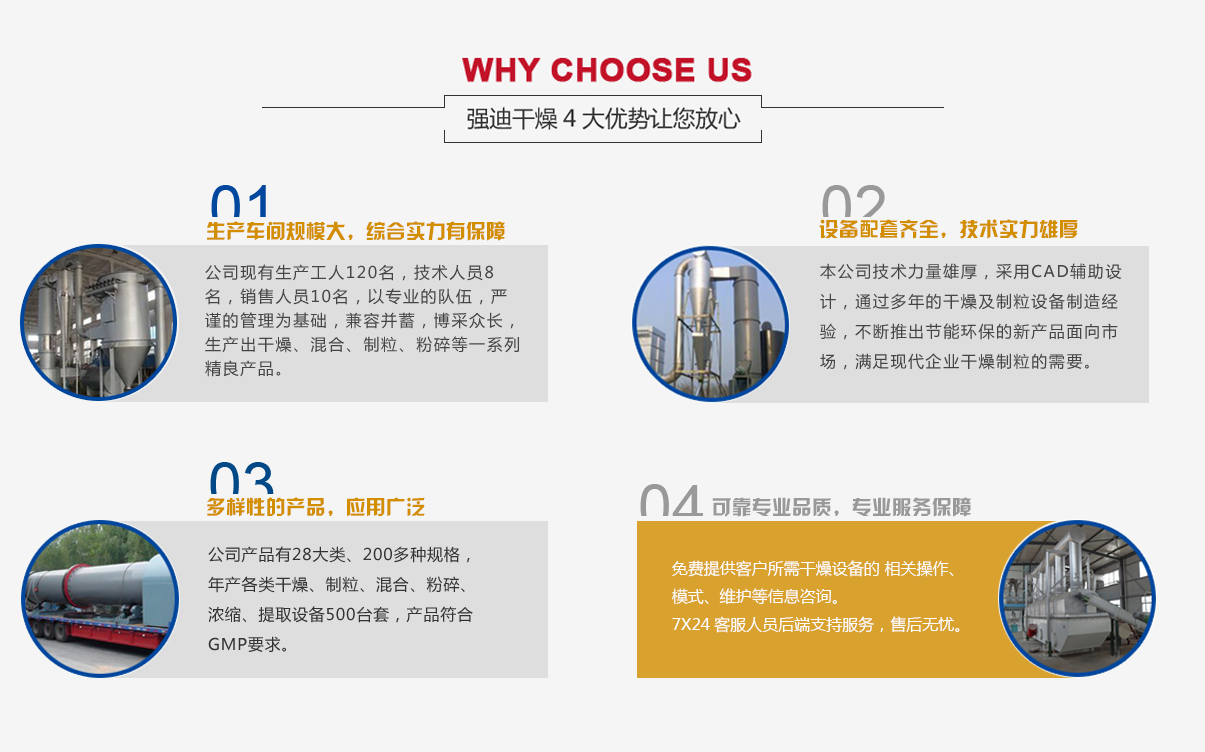 常州市強迪干燥設備有限公司位于經濟發達的長江三角中心,常州市鄭陸鎮,東臨上海,西靠南京,地處滬寧高速橫山路口,距常州機場、火車站十幾里,交通十分便捷。 公司占地面積45000平米,建筑面積30000平米,現有生產工人120名,技術人員8名,銷售人員10名,我公司是中國制藥裝備行業、中國化工裝備行業、中國食品機械干燥設備行業定點生產企業,公司產品有28大類、200多種規格,年產各類干燥、制粒、混合、粉碎、濃縮、提取設備500臺套,產品符合GMP要求。我公司多年來一直致力于干燥設備的研制、生產和經營。公司十分重視科技創新,先后與醫藥設計院,化工部,大專學等多家科…  MORE +